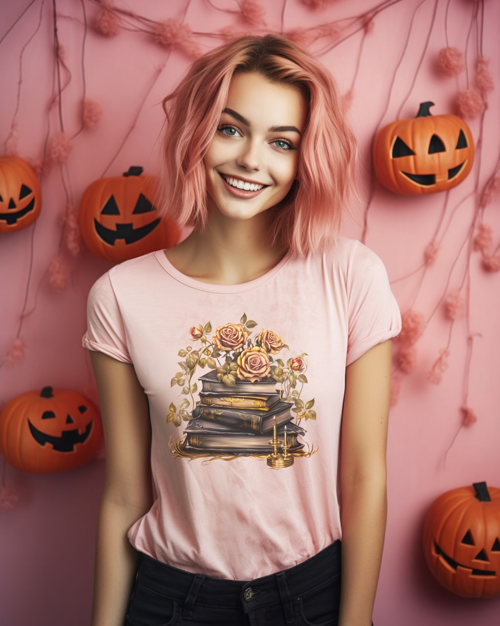 This Gold Rose Halloween Bookish Comfort Colors T-Shirt provides a fun take on traditional Halloween style. It features a cozy, comfy, and gothic design with a spooky look that's perfect for the season.