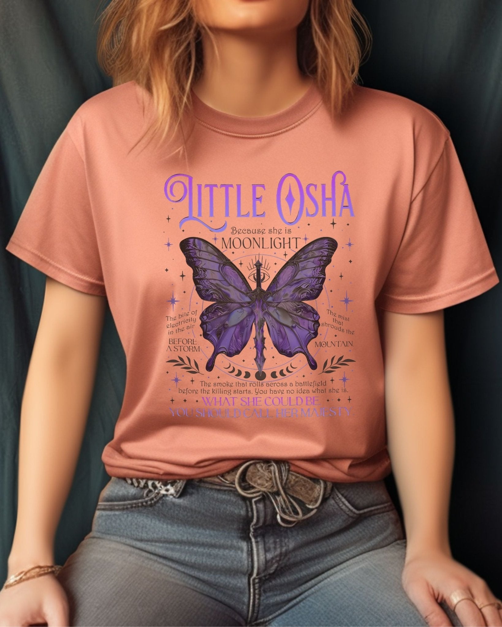 - Gothic fantasy artwork: Features the Little Osha butterfly and moonlit sword motif.