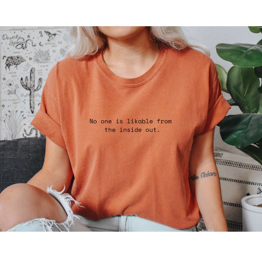 This Verity shirt features the powerful statement "No one is likable from the inside and out." The quote suggests that people can have flaws and imperfections that make them unlikable, but it also acknowledges that these flaws are what make us human. The quote encourages self-reflection and self-acceptance, despite our imperfections.