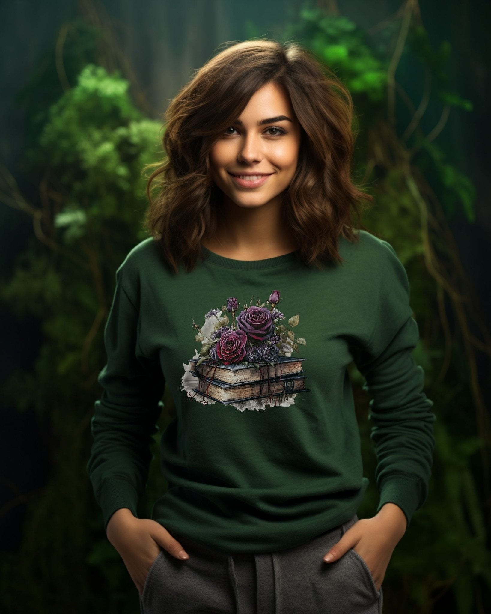 Gothic Black and Purple Halloween Rose Bookish Sweatshirt