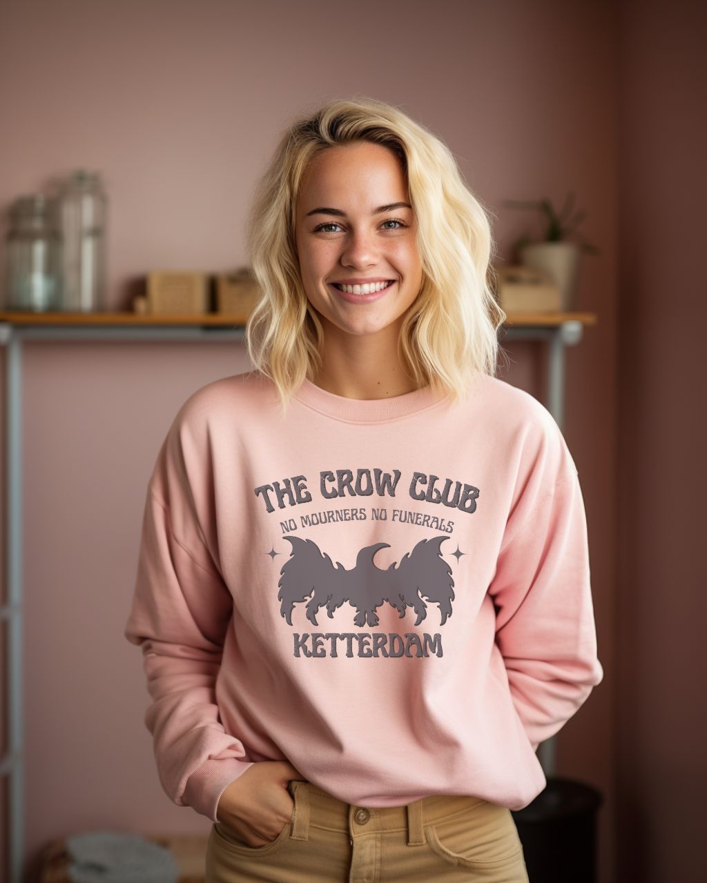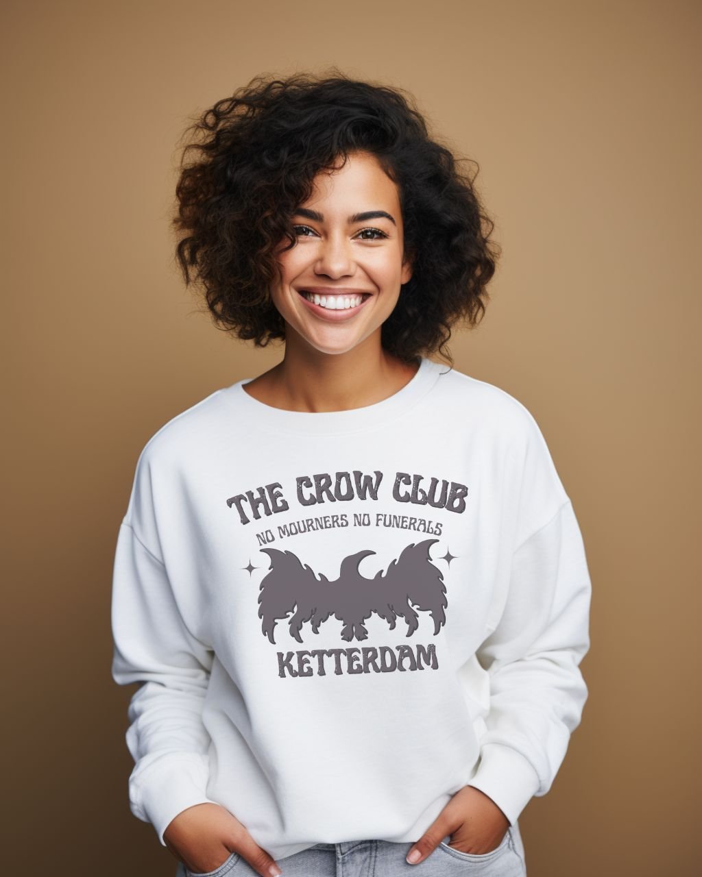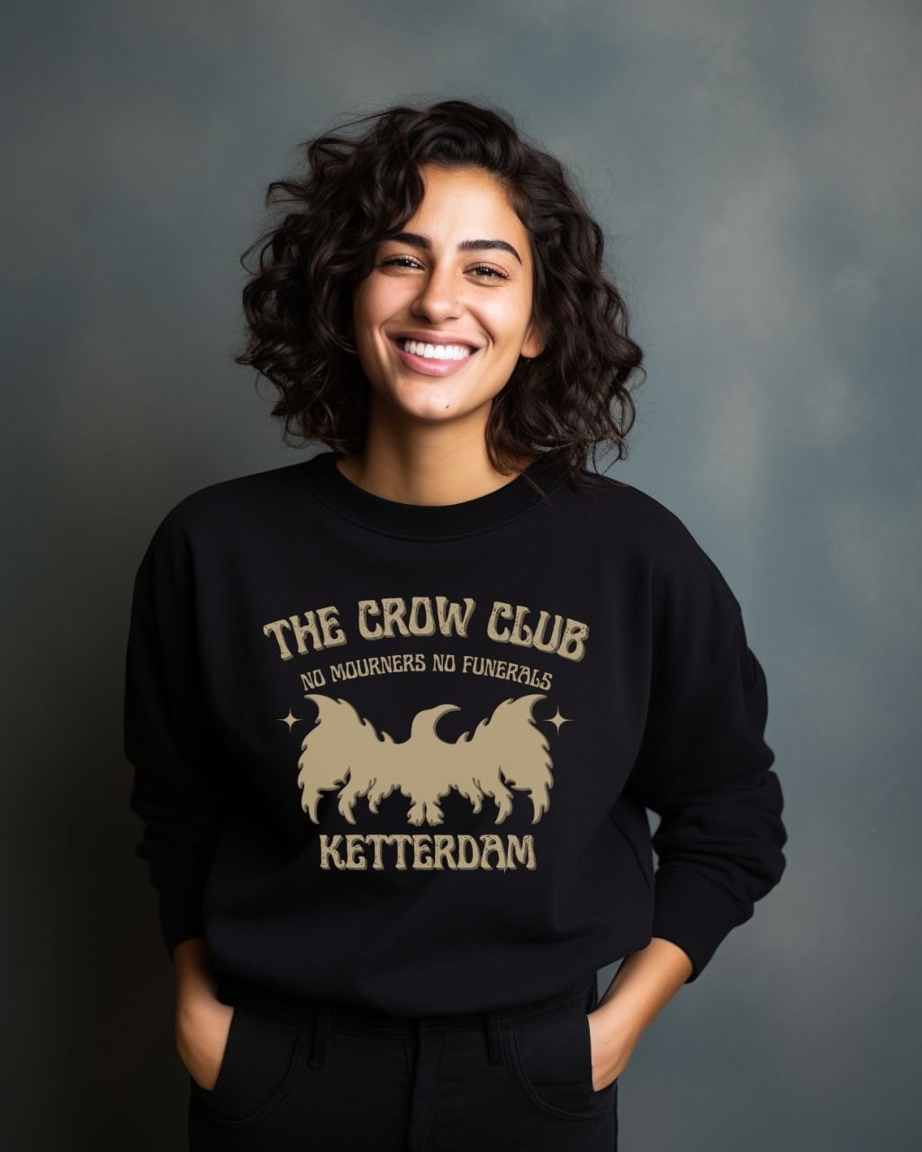 Step into the gritty and enchanting world of Ketterdam's East Stave with our exclusive Crow Club Sweatshirt. This sweater features a striking crow print, embodying the spirit of danger, intrigue, and ambition that defines the city's underworld. Inspired by Kaz Brekker's notorious gang of thieves and misfits, this shirt is your ticket to the darker side of fantasy literature. Wear it proudly and join the Crow Club today!