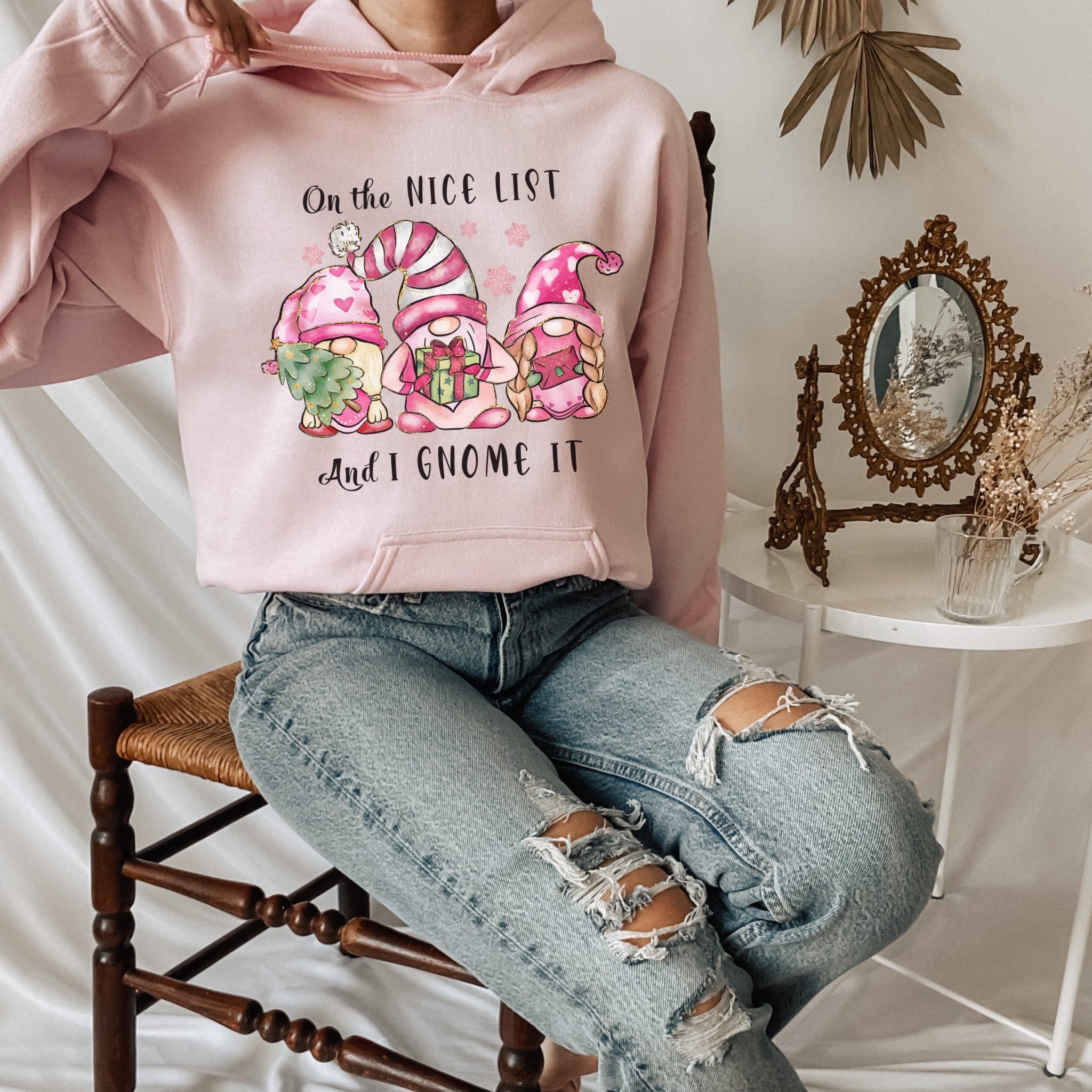 The Christmas Gnome Hoodie would be a stunning gift for anyone who love Gnomes! A great gift idea, or family matching shirt this Christmas!