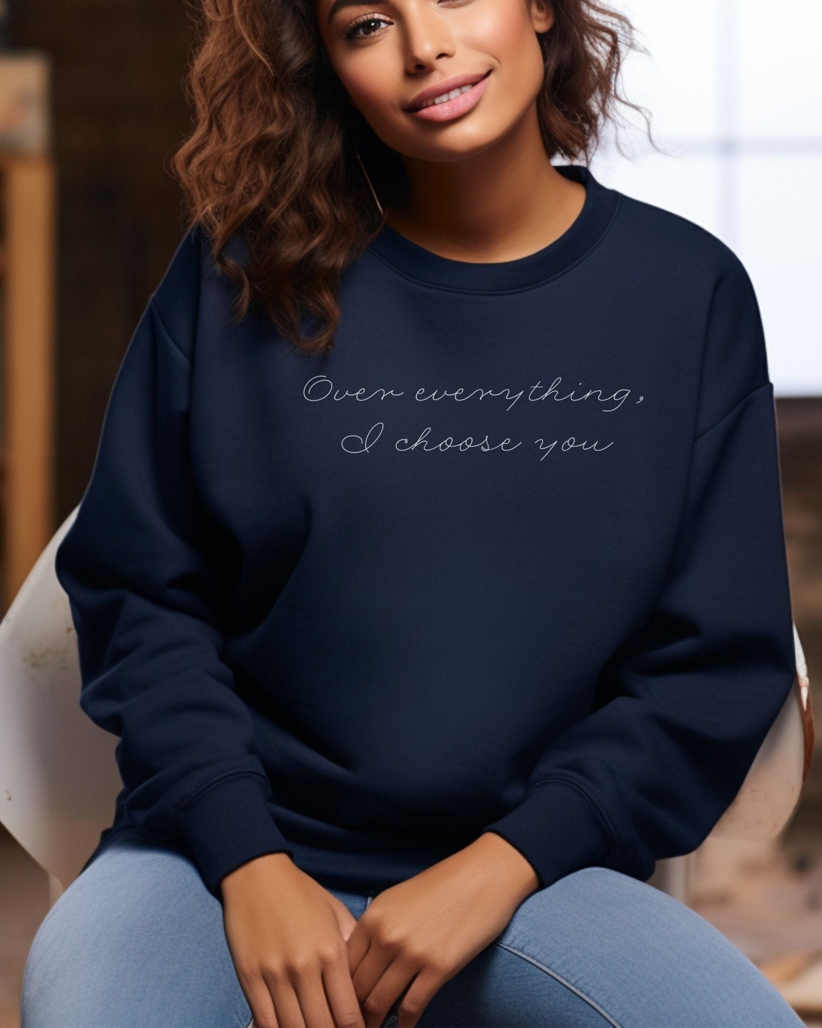 Hey book lovers! We've got all the Heartless lovers with this super cozy sweatshirt featuring the quote "Over Everything, I Choose You"!