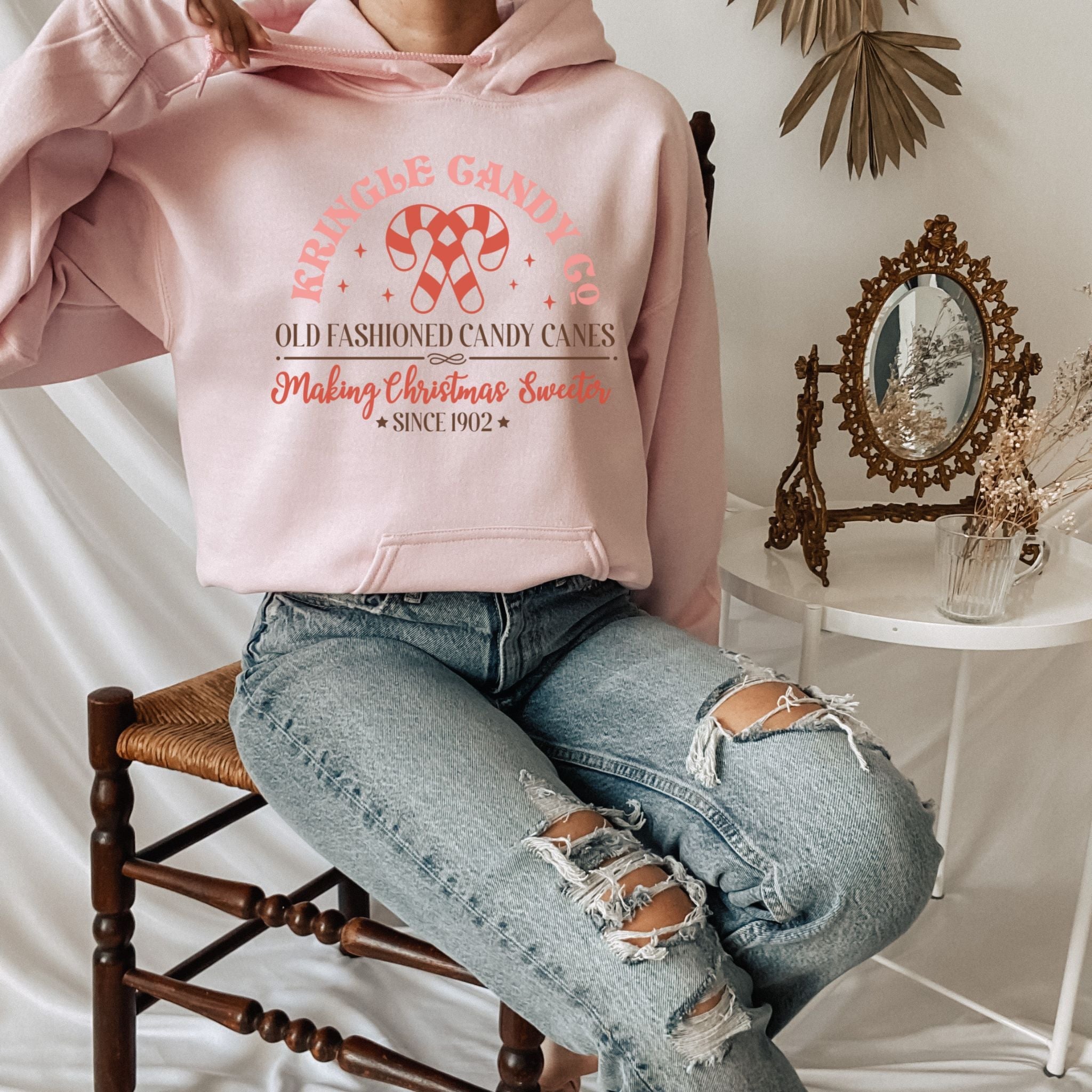 The Kringle candy co vintage shirt is a great gift idea for those who love retro and holiday things! These hoodies are soft, light and warm, making them the perfect everyday staple.