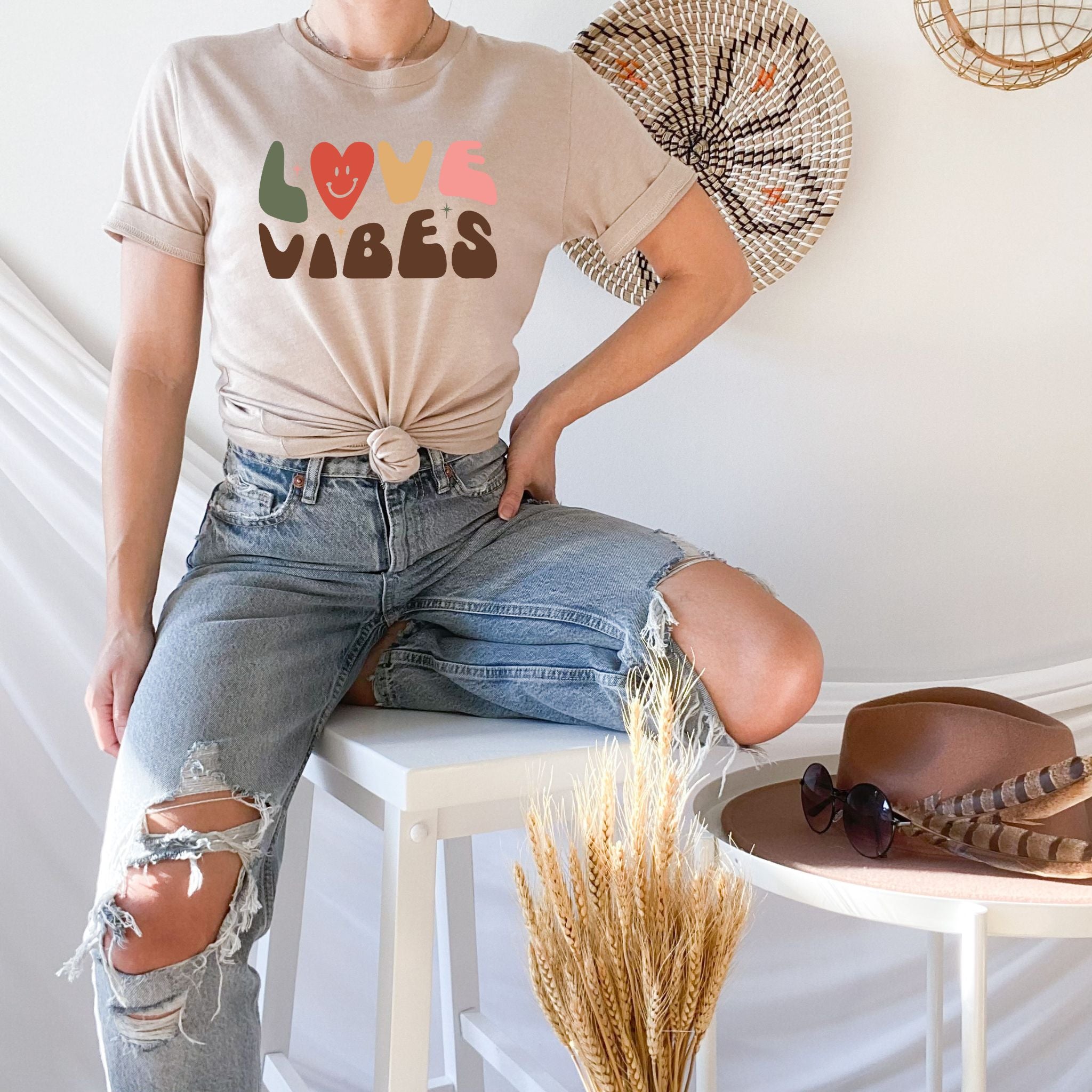 Make the day memorable and unforgettable with one of our Valentine's T-shirt! The retro graphic Love Vibes shirt can match any outfit this valentines day! Perfect for couple matching shirt and gifts for valentines day!