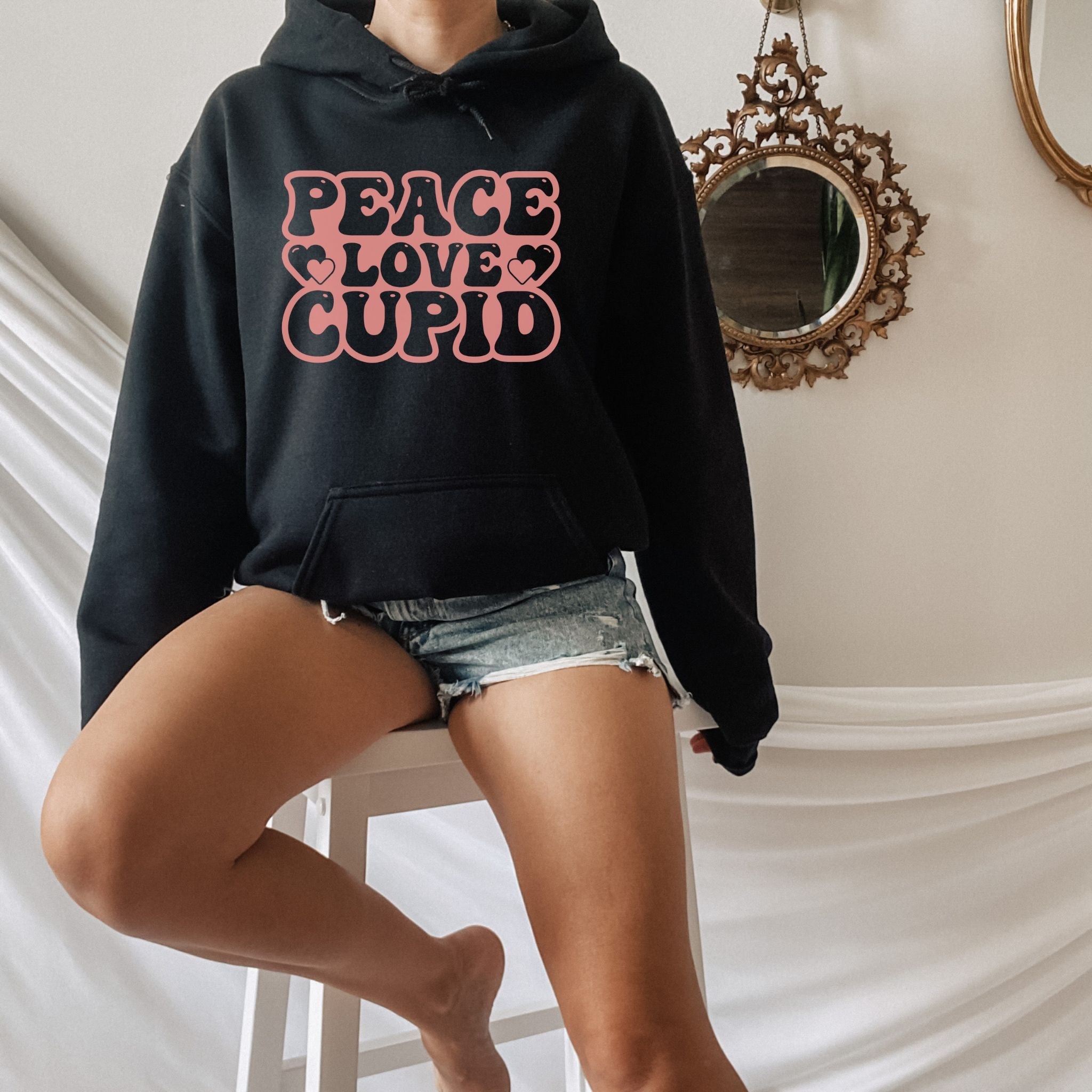 Make the day memorable and unforgettable with one of our Valentine's T-shirt! The retro graphic Peace Love Cupid hoodie can match any outfit this valentines day! Perfect for couple matching shirt and gifts for valentines day.