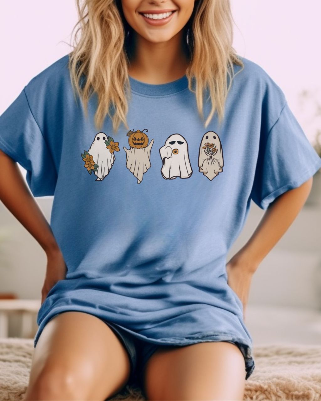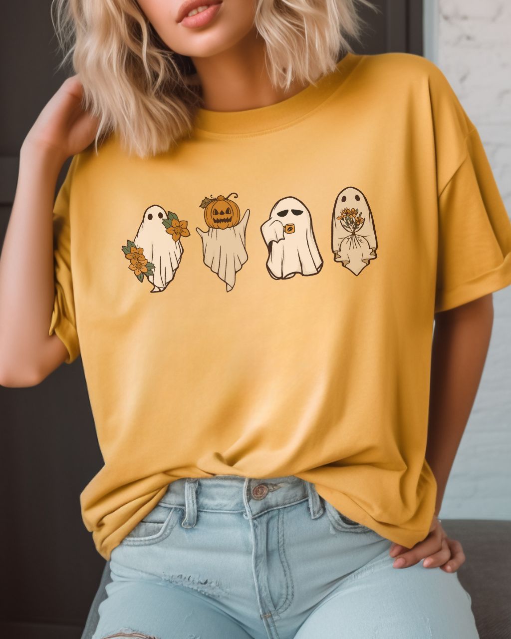 This Retro Pumpkin Ghosts Halloween Comfort Colors T-Shirt is the perfect way to give a spooky season twist to your wardrobe! Show off your love of retro pumpkin ghosts and Halloween style with this fun and comfy tee!