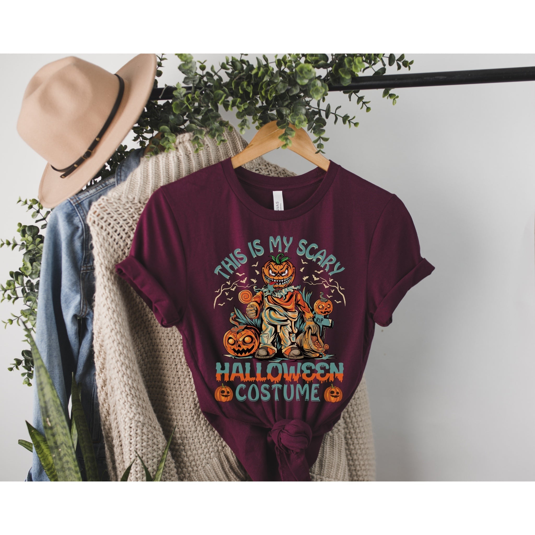 This ghoulishly good-looking Scary Halloween Costume T-Shirt is perfect for carving pumpkins or trick-or-treating with the kids. This classic short sleeve tee fits like a well-loved favorite with its soft cotton and quality print that make users fall in love with it over and over again. These t-shirts have ribbed knit collars to bolster shaping. The shoulders have taping for better fit over time. Dual side seems hold the garment's shape for longer.