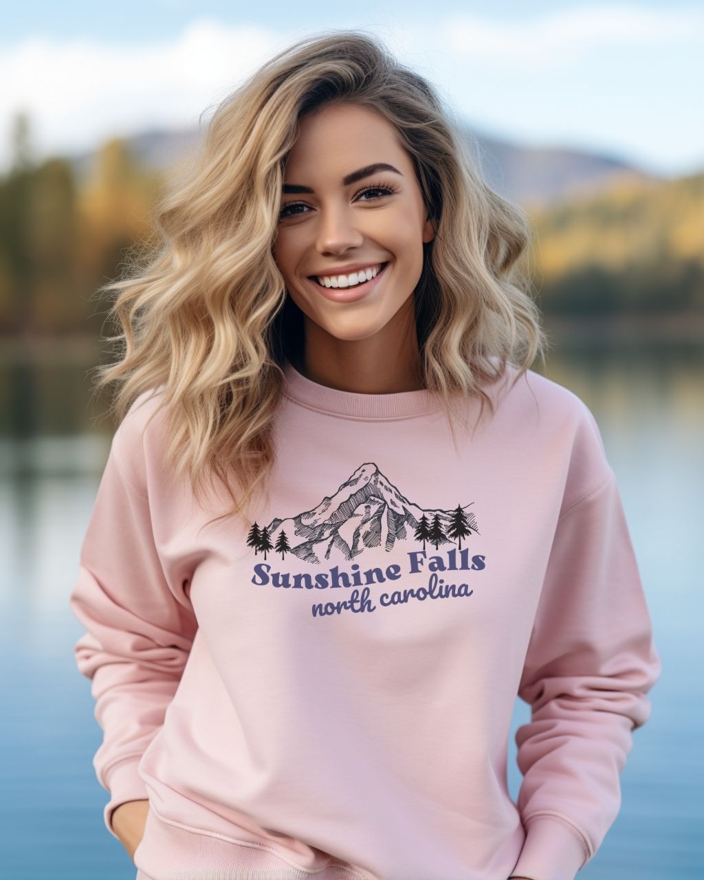 Wear the sunshine falls sweatshirt to express your love for the Book Lovers novel. It's the perfect choice for book club meetings, library visits, or simply lounging at home with your favorite novel.
