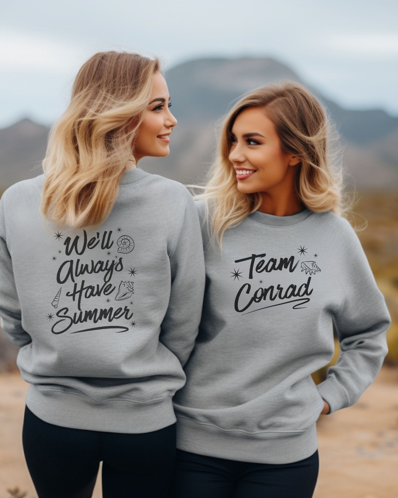 Quiet strength, soft confidence — this Team Conrad sweatshirt captures everything fans love about The Summer I Turned Pretty. “Team Conrad” decorates the front and “We’ll Always Have Summer” marks the back, celebrating the nostalgia and heart of Cousins Beach. It’s the perfect TSITP sweatshirt for anyone who believes that love stories written in summer never fade.